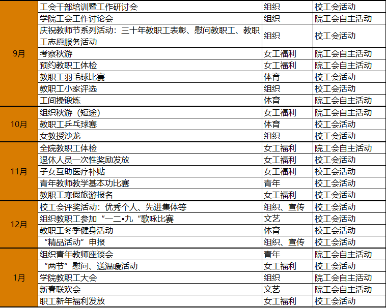 会议下发了《2019-2020学年拼搏手机版登录入口工会工作计划》,学院工会在配合学校工会完成“规定动作”之外,积极开展很多深受教师喜爱的“自主活动”,例如涵盖在职和离退休教师的春秋游、各种节日的慰问、组建文体社团、组织青年教师座谈会、召开学院教职工大会、举办新春联欢会等丰富多彩的活动。在活动中,各位工会委员各司其职,亲密配合,提前规划,通力协作,全力打造外院工会一个又一个精品活动。