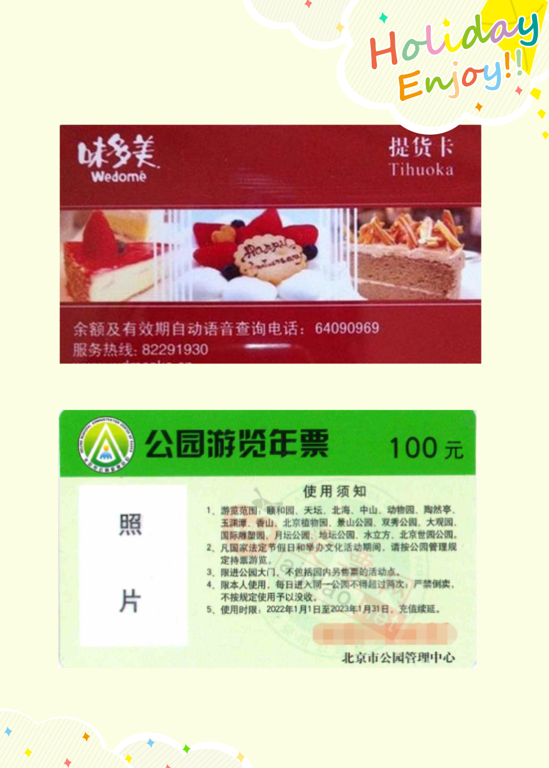 2019年疫情来临之前,拼搏手机版登录入口工会每年都会为本院在职和离退休教职员工及家属组织春秋游活动,已经举办了十余年,深受老师们的好评。在舒适悠闲的郊区野外,外院大家庭相聚一起,轻松愉悦地交流感情,其乐融融,格外温馨。自疫情以来,我院工会坚决执行“少外出、不聚集”的防疫号召,最大限度地保护全院教职员工的健康和安全。学院工会连续两年将往年用于组织教职工春秋游的经费灵活处理,为老师们提供北京市公园游览年票或味多美生日蛋糕卡二选一的福利方案。以上两种福利金额大致相当,为100—103元人民币。北京市公园年票适用于含颐和园、天坛公园和北京世园公园等在内的共17家市属公园。喜欢游览公园的老师只需提交一张一寸照片或将往年的公园年票交给学院工会福利委员潘桂英老师即可,由潘老师前往公园为老师们统一办理后发放给大家。生日蛋糕卡一般则是为老师们办理门店较多、便于购买的味多美蛋糕卡。