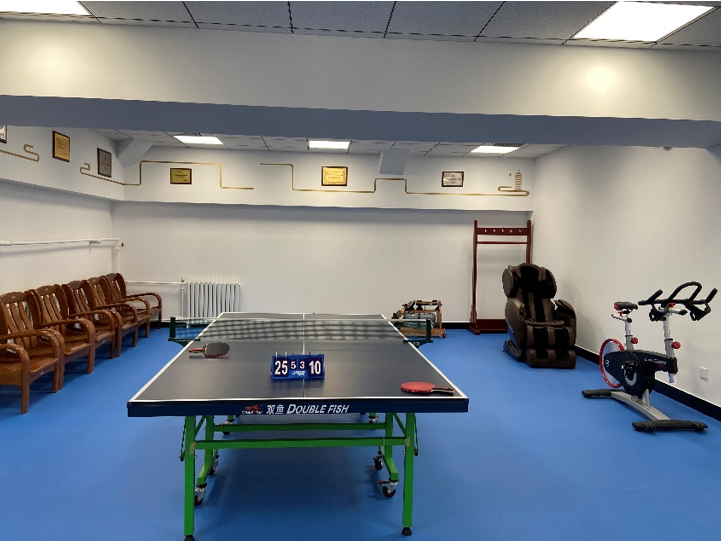 学院工会主席张冬梅老师陪同工会领导们来到外文楼工会之家进行实地视察。作为北京市总工会“模范职工小家”,2019年外文楼修缮过程中,外院同步进行了“工会之家”建设规划,特别设计使用运动场馆专用灯光,乒乓球比赛专用地面,配置了更衣室、淋浴间等必备设施,吸引了全院教职员工积极投入健身运动。