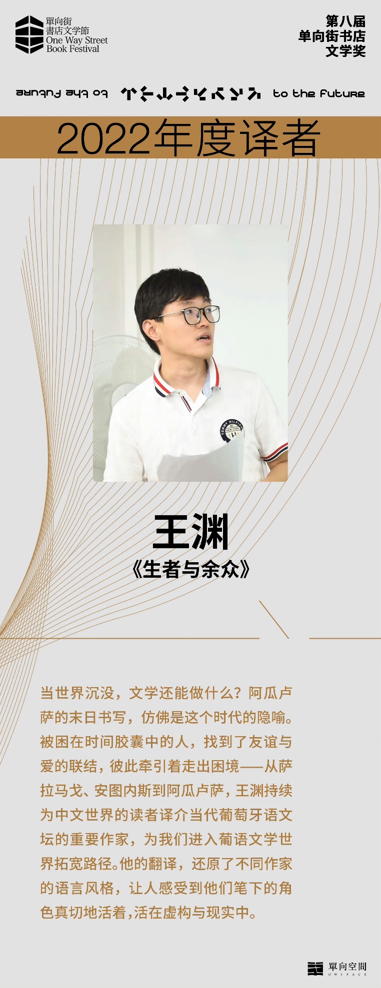 王渊老师作为本次获奖者之一,充分展示了他在文学翻译方面的贡献。同时,他的荣誉也是北京大学葡语专业实力的有力证明。接受颁奖时,王渊老师感谢单向街书店所授予的荣誉,并表示将继续发挥译者的桥梁作用,为中国和葡语国家文学的交流贡献力量。