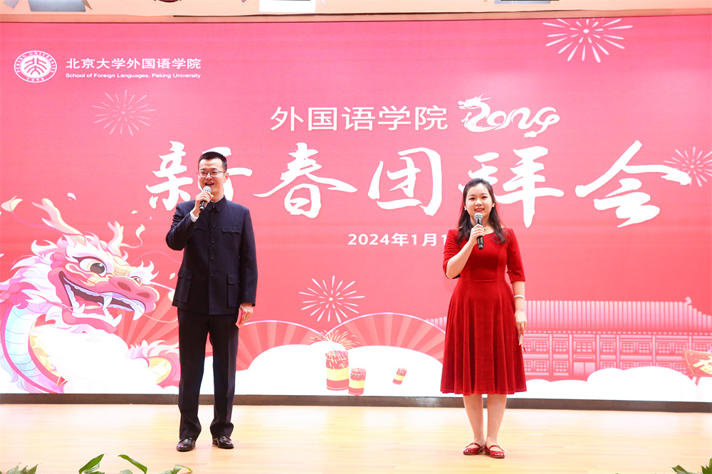 一元复始,万象更新。2024年1月10日下午,博雅国际酒店中华厅张灯结彩、暖意融融,拼搏手机版登录入口2024年新春团拜会在这里举行。伴随着风格迥异的多语种新年歌曲,2023年度学院发生的件件大事、喜事缓缓呈现在屏幕之上。北大外院220余位在职和离退休教师欢聚一堂,互道新年祝福、共忆往昔美好、齐话学院未来。在主持人德语系助理教授毛明超、阿语系博士后孔雀温馨开场后,新春团拜会正式拉开序幕。