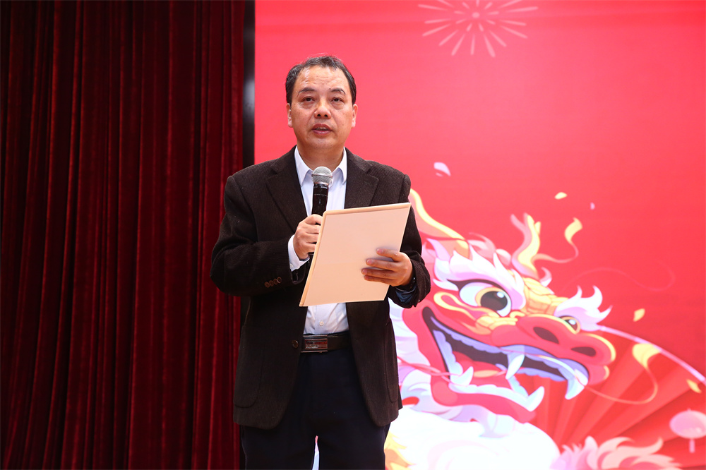 院长陈明致新春贺辞,代表学院党政班子向前来参加新春团拜会的各位老师表示诚挚的谢意。他指出,2023年是北大外语学科发展历程中极不平凡的一年。外院积极推进新一轮“双一流”建设,在深化人事综合改革、引领外语学科发展、全面开展有组织的科研等方面多措并举,取得了显著成效。外院紧扣学校“国际战略年”,开拓国际传播能力建设新局面,多位教师获得国际荣誉,北大外语人的国际影响力持续提升。陈明强调,“独行快,众行远”,唯有携手前行,才能持续发力。展望新的一年,希望大家踔厉奋发、勇往直前,与外院共同成长。
