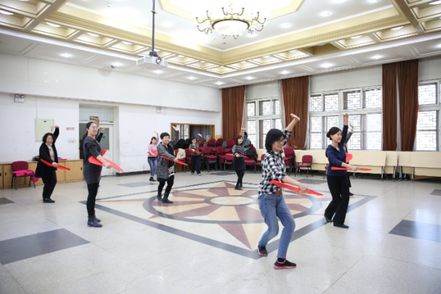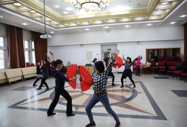今年北京大学运动会的团体操表演项目是未名太极扇,拼搏手机版登录入口积极响应学校工会的号召,在工会常务副主席、副院长张冬梅老师、工会副主席刘军老师、文体委员李宁老师、女工委员鲁学彬老师、工会小教员刘水老师的带领下组织了30余人的太极扇团队,每天11:00—11:30准时排练。因春季时常有雾霾天气,外院工会特提供民主楼208室内多功能厅以及多媒体设备供太极扇排练使用。