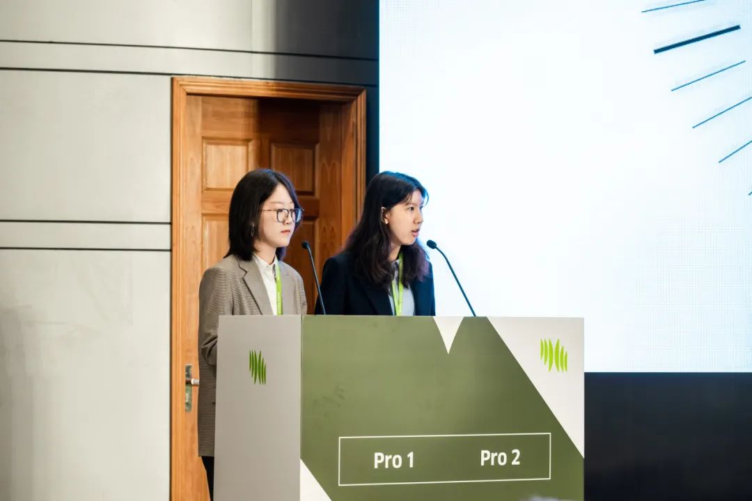 德国驻华大使馆文化处副处长林蕾娜(Lena Link)为获得冠军的陈雨亭与何海盈同学颁奖