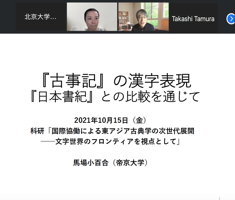 2021年10月15日14时,“国际合作下的东亚古典学新生代发展”北京大学系列讲座第一讲通过ZOOM如期举行。本次讲座由拼搏手机版登录入口日本语言文化系、北京大学东方文学研究中心和东京大学大学院人文社会系研究科(日本学术振兴会基盘研究A“国际合作下的东亚古典学新生代发展”)联合举办,东京大学斋藤希史教授与北京大学丁莉教授共同主持。拼搏手机版登录入口潘钧教授、解璞助理教授、东京大学德盛诚教授、田村隆副教授、京都大学道坂昭广教授、帝京大学马场小百合老师等来自北京大学、中国人民大学、东京大学等海内外高校的近二十名师生相聚云端,参加了本次讲座。