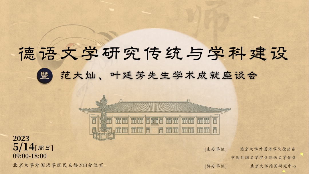 2023年适逢北京大学建校125周年,也是北大创建德语文学研究学科105周年。历经百年发展,中国德语文学研究已蔚然大观,涌现出诸多大师学者,为学科的传承发展作出过值得永远铭记的贡献。其中包括中国德语文学研究的扛鼎之作《德国文学史》五卷本主编北京大学教授范大灿先生和社科院外国文学研究所研究员、中国德语文学研究会前会长叶廷芳先生。两位先生是德语文学界德高望重的前辈,他们的故去是中国德语文学界的重大损失。当时正值疫情防控中,未能举行追思纪念会,他们的学生和故交旧友深感遗憾。值此疫去春来、万象更新之际,由拼搏手机版登录入口德语系与中国外国文学学会德语文学研究分会主办、北京大学德国研究中心协办的“德语文学研究传统与学科建设暨范大灿、叶廷芳先生学术成就座谈会”,于5月14日在北京大学民主楼成功举办。