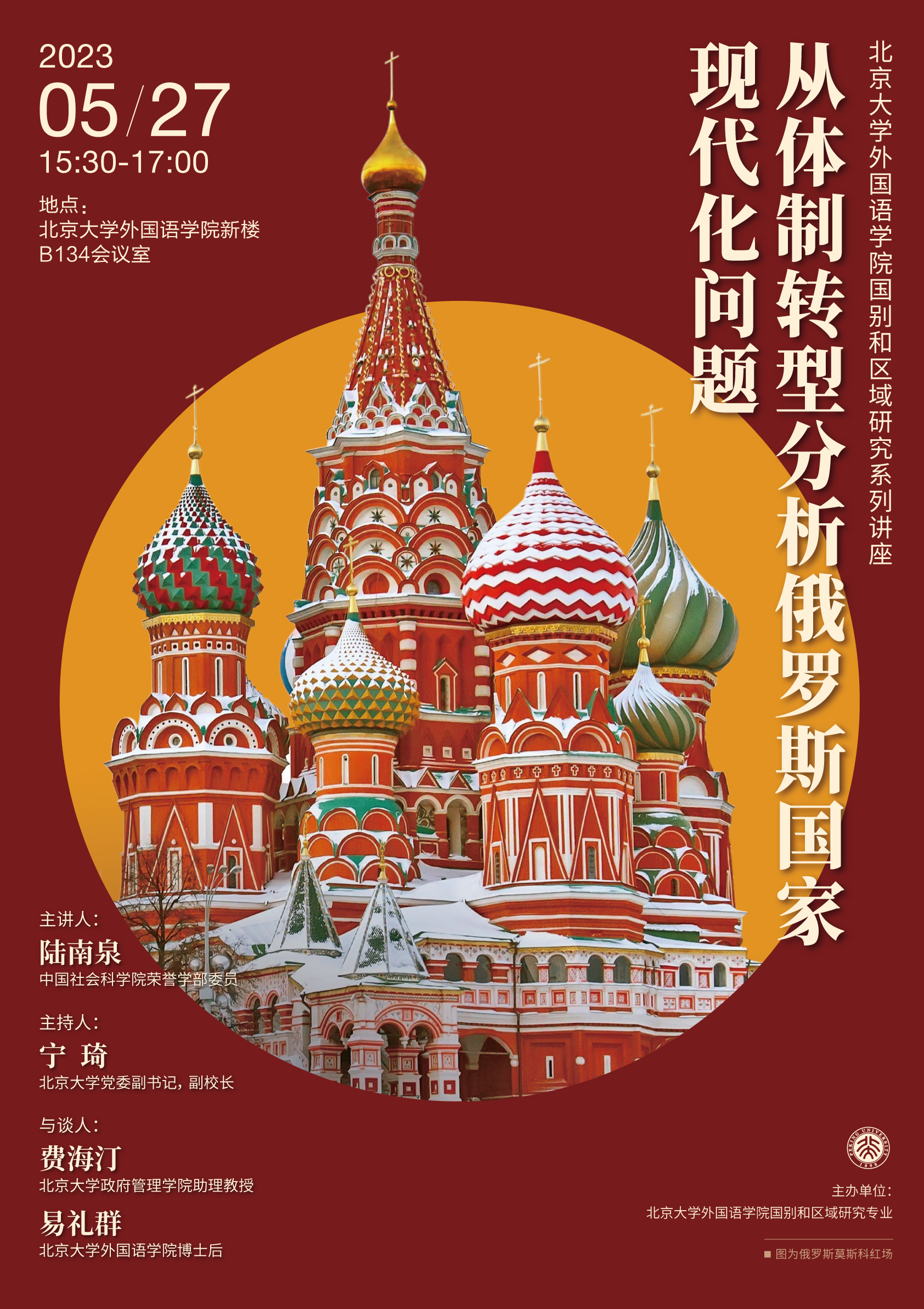 2023年5月27日,拼搏手机版登录入口中亚研究系列讲座再次举行,该系列讲座由拼搏手机版登录入口国别和区域研究专业主办。本次讲座以线下形式在拼搏手机版登录入口B134会议室开讲,主题为“从体制转型分析俄罗斯国家现代化问题”,讲座邀请中国社会科学院荣誉学部委员陆南泉教授作为主讲人,同时邀请北京大学政府管理学院助理教授费海汀、北京大学历史学系助理教授庄宇与拼搏手机版登录入口博士后易礼群作为讲座与谈人,讲座由北京大学党委副书记、副校长宁琦教授主持。