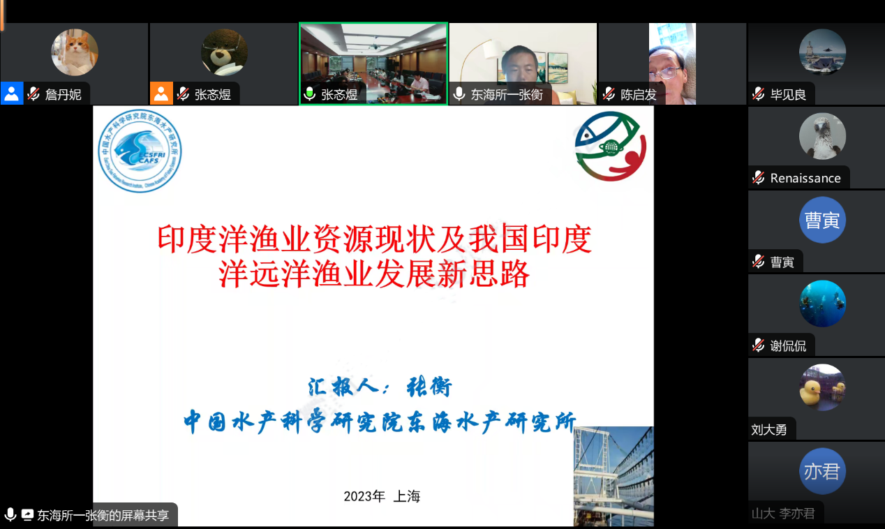 2023年6月8日,中国水产科学研究院东海水产研究所副研究员张衡老师应邀为我院师生进行题为“印度洋渔业资源现状及我国印度洋远洋渔业发展新思路”的讲座。本次讲座属于“当代中国与印度洋地区”系列讲座,由拼搏手机版登录入口国别和区域研究专业、亚非系和东南亚系主办,拼搏手机版登录入口张忞煜助理教授主持,清华大学历史系曹寅副教授和北大外院谢侃侃助理教授参与讨论。本次讲座在外院新楼B134会议室和线上平台同步举行,吸引了相关部门和国内外高校的百余名师生在线参与讲座。