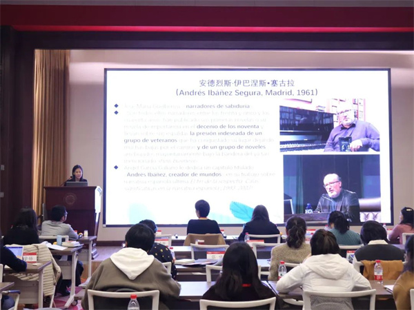 分论坛一的主题是“西葡语文学与作家作品研究(一):谱系·时代·伦理”,分论坛由南京大学张伟劼主持,与会学者的论文涉猎十九世纪至当代十余位西葡语作家的写作实践与文艺思考。首都师范大学杨玲以安德烈斯·伊巴涅斯《一种更高的生活》为例,从文体、主题、修辞等方面剖析这位西班牙当代作家的艺术风格,评析这部作品如何“把小说写成音乐”,探索并到达真正的彼岸。中国人民大学李卓群提炼并阐释了西班牙战后作家马丁-桑托斯以“辩证现实主义”与“低层现实主义”为核心的文艺创作观,在文本细读中展示作家对其文艺观的创作实践。北京大学蔡学娣分析西班牙当代作家安德烈斯·巴尔瓦《光明共和国》中的儿童形象,探讨作者对于传统的“童真”概念的质疑和重新定义,以及对于秩序、暴力以及文明本身等理念的反思和重构。南开大学梁嘉艺关注西班牙当代作家阿尔瓦罗·庞波,指出其小说通过对存在主义的思考,揭示了伦理与道德的重要性:只有在一定的伦理关系中遵循道德的牵引,才能在纷杂的世界中完成自我价值的实现。东南大学田原聚焦当代哥伦比亚作家劳拉·雷斯特雷波文学创作中的情感书写与社会批判,阐释她作品中丰富的情感主题及其叙述方式,挖掘作品如何反映社会问题,揭露社会不公和人性弱点。汕头大学史志龙关注阿根廷作家安娜·玛丽亚·舒亚的微小说创作,探讨她如何在有限的篇幅内实现叙事的深度和广度,揭示其作品中的拉美文化、社会意义和政治现状。北京大学许彤的研究基于西班牙十九世纪文人贝克尔的诗歌创作和诗歌批评,通过文本细读,探讨“‘干’‘炼’之诗”风格创新中蕴含的抒情内在化和抽象化诉求,分析贝克尔抒情诗的现代性表征。北京理工大学曾艳分析艾米莉亚·帕尔多·巴桑叙事文本中作为表征的时尚案例,解读十九、二十世纪之交西班牙“新女性”形象及其背后的历史传统和当代社会思潮。浙江越秀拼搏手机版登录入口张啸研究豪尔赫·纪廉诗歌中“物本体书写”话语谱系,通过对物本体的多样谱写,诗人反思批判了人类中心主义,构建物的诗性自治,实现了“走出人类世”的“物物共生”诗歌生态化的可能。中国传媒大学黄婷以巴西诗人哈罗德·德·坎波斯翻译理论中的“创译”批评思想为根据,探究巴西具体派诗人对中国古典诗歌的美学解读和“再想象”、“再创造”过程中所提出的翻译问题。马德里自治大学盛妍分析何塞·安赫尔·巴伦特的三首艺格敷词诗歌,以及路易斯·费尔南德斯和保罗·克利的三幅画作,通过比较研究强调自然作为艺术灵感之源与哲学探究之源的持久相关性。评议人卢云、谷佳维、张伟劼、杨玲、许彤与十一位参与论文发表的老师展开了交流。