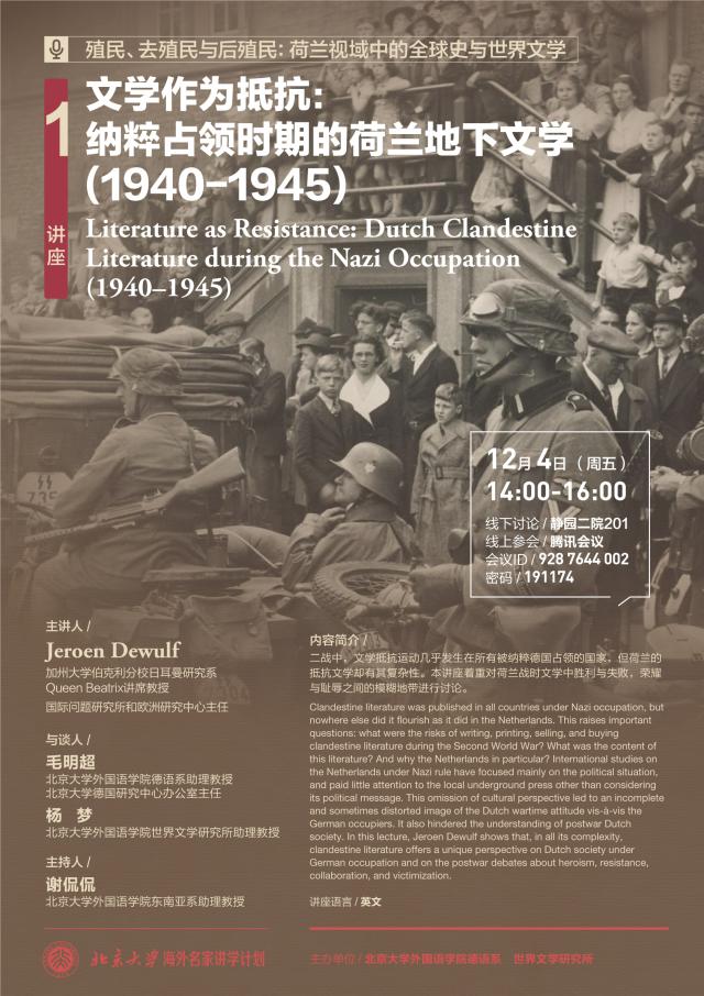 北京大学海外名家讲学计划:文学作为抵抗:纳粹占领时期的荷兰地下文学