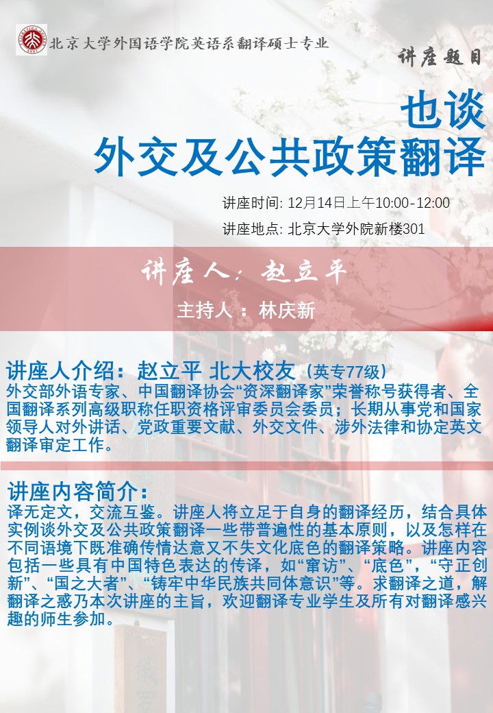 讲座预告:也谈外交及公共政策翻译