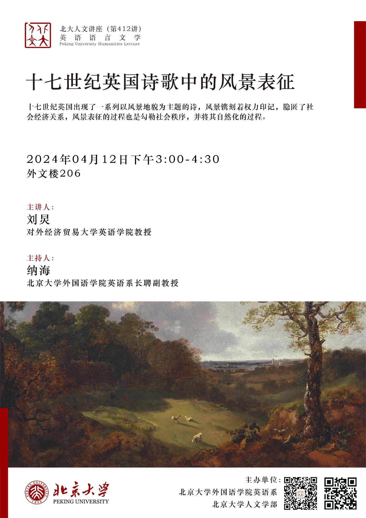 北大人文讲座:十七世纪英国诗歌中的风景表征