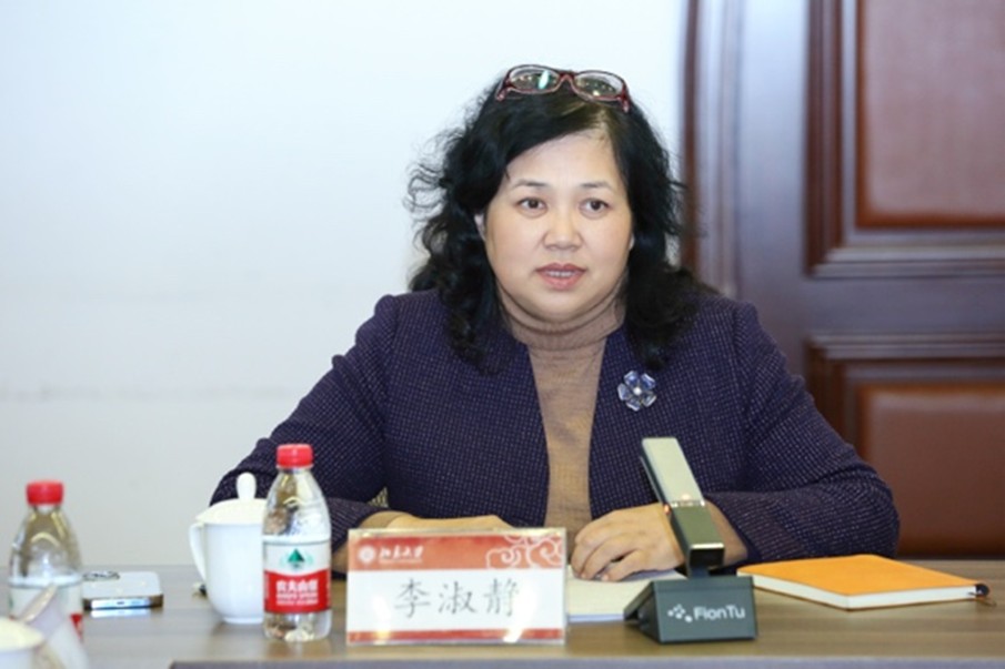 听完同学们的分享,李淑静高度赞扬大家一年来取得的进步。她带领同学们重温学院历史,回顾百余年来外语人坚守初心与使命,从救亡图存到立德树人,为国家建设、文明传承作出的不懈努力。她也由此回应,于北大外院人而言,语言从来不只是工具,更是汲取新知的阶梯、奉献国家的本领、彪炳文化的载体、传承文明的媒介。