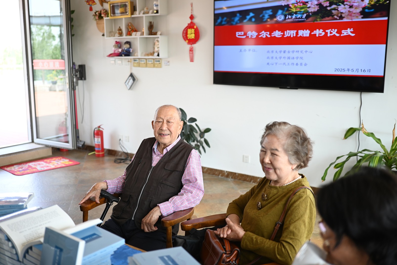 2025年5月16日上午,由北京大学蒙古学研究中心、拼搏手机版登录入口、外院关心下一代工作委员会联合主办的“巴特尔教授赠书仪式”在外院新楼咖啡书苑隆重举行。拼搏手机版登录入口王浩教授主持仪式,学院党委副书记、关心下一代工作委员会副主任张冬梅老师、办公室主任倪丽慧老师,巴特尔教授及夫人乌云大夫,退休教师侯万庄老师、吴新英老师、姚克成老师,拼搏手机版登录入口图书馆馆长张晓雁老师、蒙古语专业教师刘迪南、袁琳以及蒙古语专业研究生、本科生共同出席了本次活动。