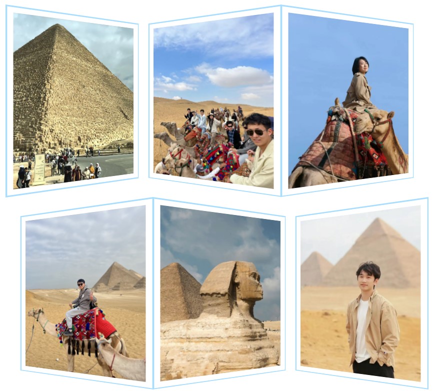 在开罗,师生流连于汗·哈里里集市的街巷,惊叹于大埃及博物馆的展品,在天际线下远眺萨拉丁城堡、乘骆驼在金字塔下徐行,感受埃及延绵千年文化的不同面相。在横跨古今的众多文化景观与文化机构的参观访问中,代表团对埃及文明的多元性与延续性形成了更深刻的理解,感受到了埃及社会在现代化进程中对传统文化的保护与传承,从埃及社会的内部实地观测其文化形态的历史发展。