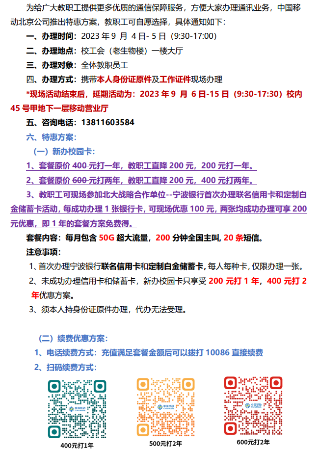 生活服务信息:中国移动公司专属优惠活动