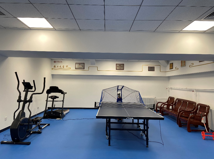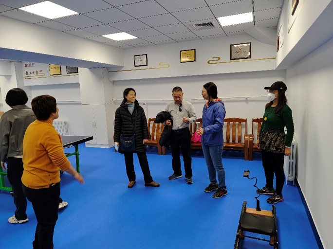 学院工会主席张冬梅老师陪同工会领导们来到外文楼工会之家进行实地视察。作为北京市总工会“模范职工小家”,2019年外文楼修缮过程中,外院同步进行了“工会之家”建设规划,特别设计使用运动场馆专用灯光,乒乓球比赛专用地面,配置了更衣室、淋浴间等必备设施,吸引了全院教职员工积极投入健身运动。