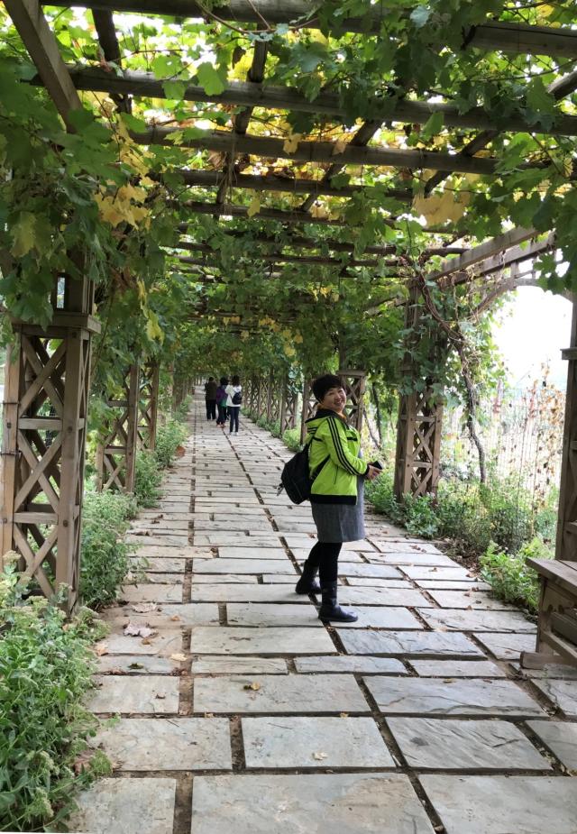 小镇依山而建,融合了欧式建筑风格,风光秀丽,空气怡人,地理位置得天独厚,法式风情浓郁。同时,它更是集葡萄种植、葡萄酒酿造、葡萄与葡萄酒文化传播等多功能为一体的综合性国际酒庄。由于时间有限,我们仅参观了葡萄长廊、欧洲小镇、地下酒窖以及酒文化博物馆等几处景点。