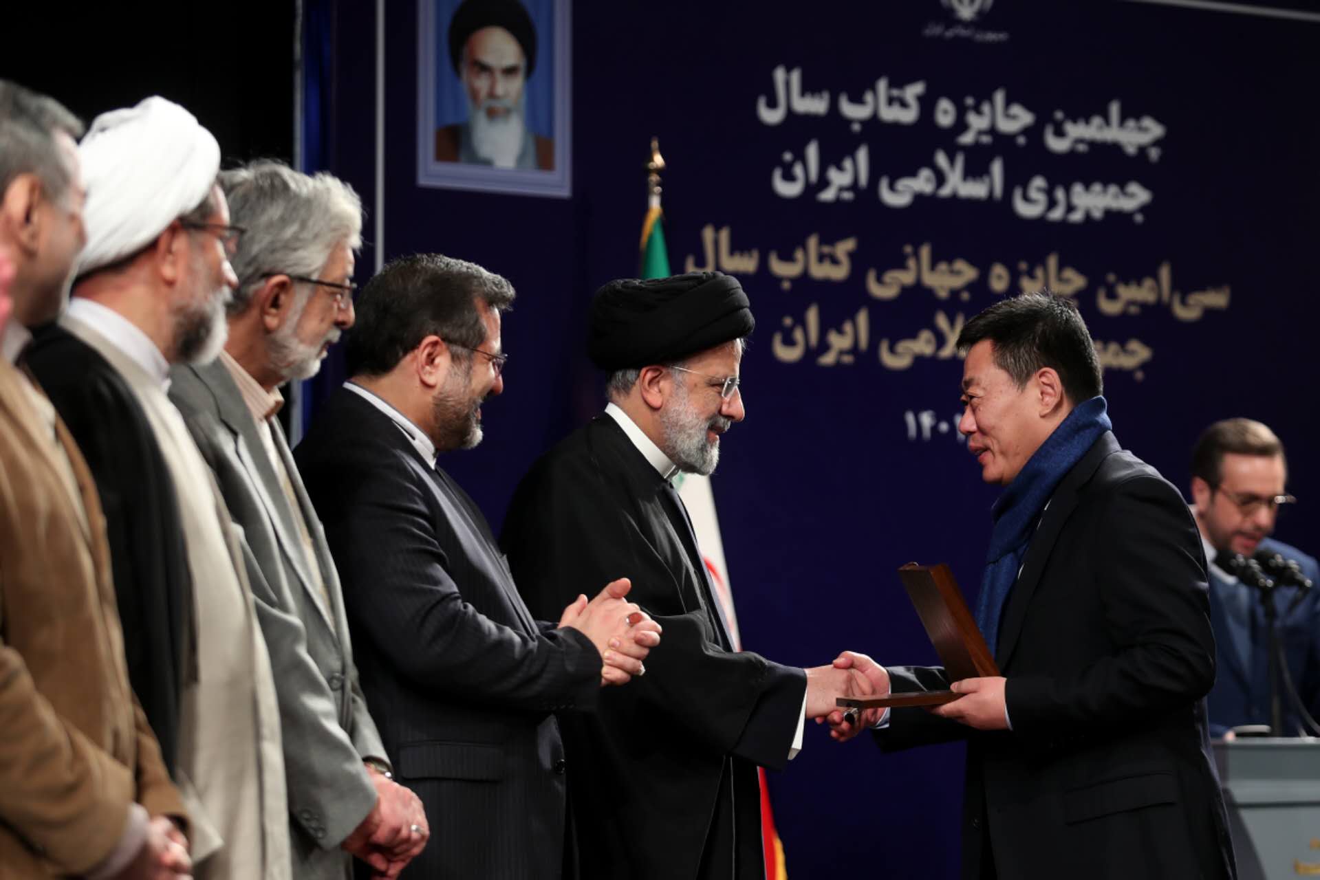在德黑兰团结剧院举办的颁奖仪式上,伊朗总统莱希为获奖者颁奖,伊朗文化和伊斯兰指导部部长伊斯玛仪利、波斯语言文学研究院院长阿德勒(前议长)等出席活动,中国驻伊朗大使馆文化参赞朱自浩代刘英军老师领奖。