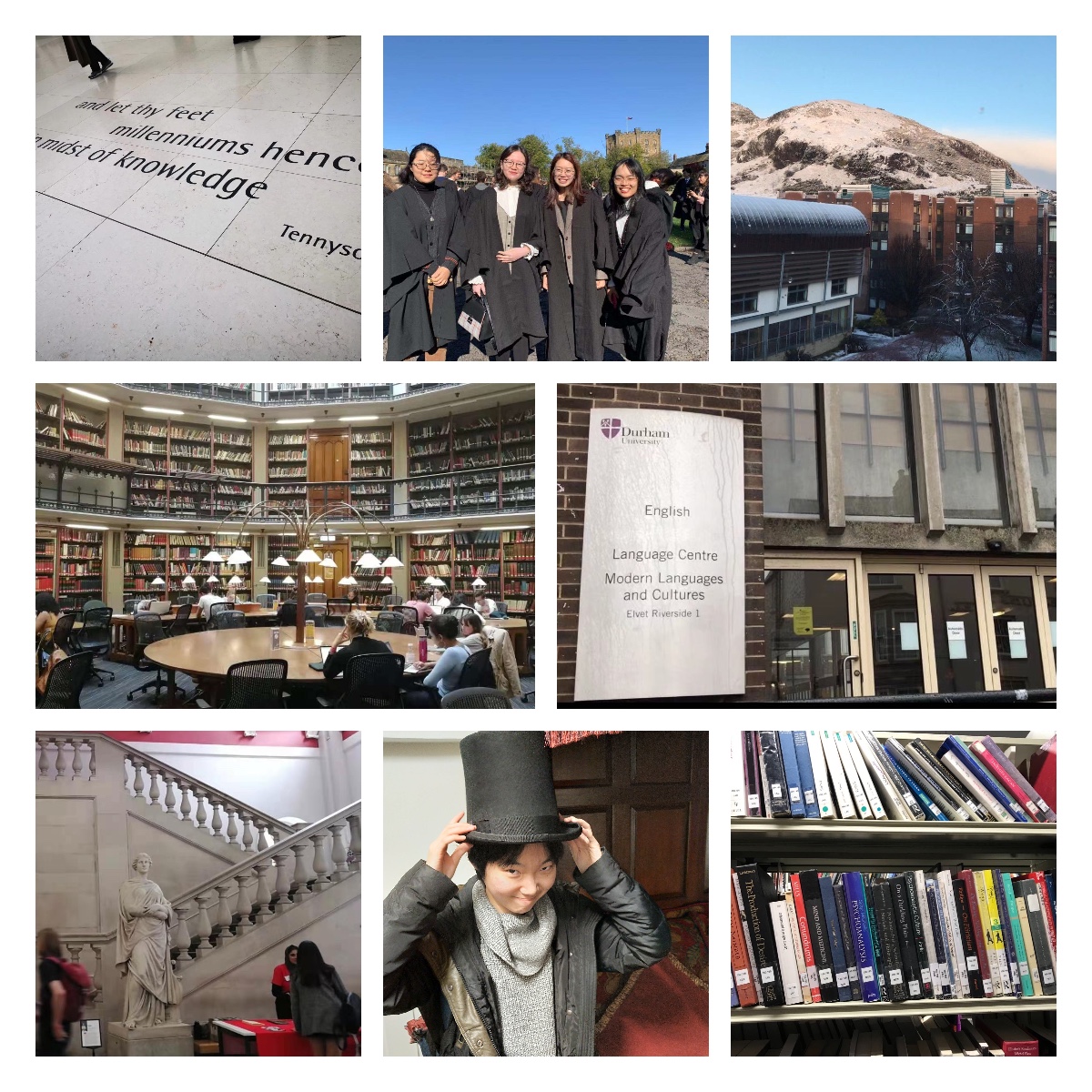 卡米叶:初到杜伦,手忙脚乱,如同浪尖上一只小船,难以顾及体面,只顾拼命掌稳舵。然而在异国他乡,成长是飞速却难以察觉的。被“上课发言”的噩梦折磨久了,渐渐地我竟也可以在无人回答老师问题的时候勇敢开口拯救局面。学术上的收获更不必说。杜伦的英语文学课程既专又精,这一年我读了好多小说和诗,好多批评著作,学着写长长的论文。虽然有时艰难,但每天读读写写倒也乐在其中。这一年我从阅读思考中收获了不少顿悟和触动,也决定了想在英语文学这条路上继续走下去。在秋天和冬天,我去了许多地方旅游。去过学校周边安静的小镇,爬山看海,也去了心心念念的伦敦,逛博物馆美术馆,看话剧音乐剧。新年伊始我在伦敦看跨年烟花,当2020的钟声敲响,人们齐声欢呼,相互祝福,宏大的喜悦仿佛汇成龙卷风,裹挟着我们奔向未来,一往无前。那时我不曾料到,不到一个月后世界便会天翻地覆,我的交换也如此潦草收尾。感慨之余,终究庆幸自己还拥有这次宝贵的经历。我以为交换的意义不在于计较学业社交的得失,而在于呼吸他乡陌生又新奇的空气,敞开自己去体悟、包容与接纳,时时保持好奇和期待。