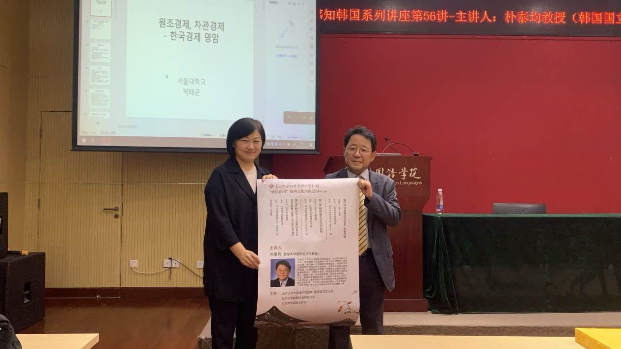 2023年10月30日至31日,受“北京大学海外学者讲学计划”支持,由拼搏手机版登录入口朝鲜(韩国)语言文化系、北京大学朝鲜半岛研究中心、北京大学国际合作部共同主办的“感知韩国”系列讲座第五十四至五十六讲在外院新楼成功举办。三场讲座主题分别为“世界韩国学的若干重要问题”“越南战争与美国的误判”“朝贡外交与去殖民化认识——世界史视域下韩国学的普遍性和特殊性”,主讲人为韩国首尔大学国际大学院朴泰均教授,由拼搏手机版登录入口副院长王丹教授、朝(韩)语系宋文志副教授、系主任李婷婷副教授主持,朝(韩)语系全体教师出席,全系各年级同学也积极参与了讲座。