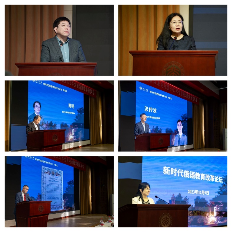 2023年12月9日,新时代俄语教育改革论坛在北京大学召开。本次高层论坛由拼搏手机版登录入口俄罗斯语言文学系、教育部“俄语人才培养模式改革虚拟教研室”、中国俄罗斯东欧中亚学会俄语教学研究分会、北京大学出版社联合举办,来自全国高校近百名俄语语言文学专业专家学者、教师参加讨论,围绕国家级一流本科专业建设、国家级一流本科课程建设、高质量外语专业教材建设及有组织科研、服务中国式现代化建设的俄语人才培养改革与实践、数智化时代的高校俄语教学改革和全国俄语教育改革云共同体(虚拟教研室)建设等议题进行发言和交流,探讨当前国家发展的迫切需要,借鉴国内外俄语专业办学的成功经验,思考我国俄语专业的定位、发展与方向。