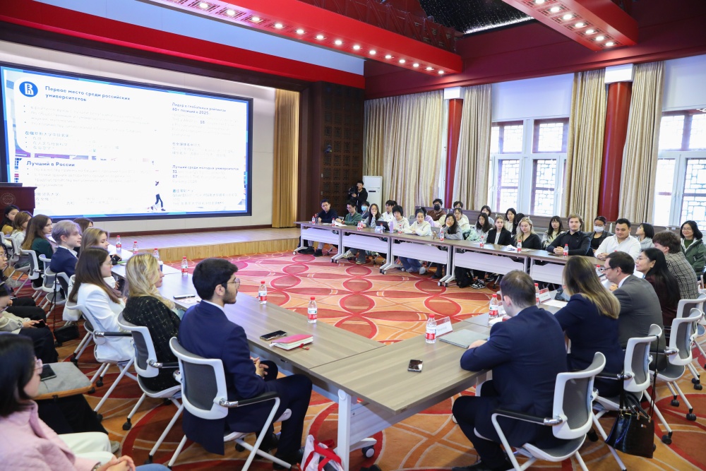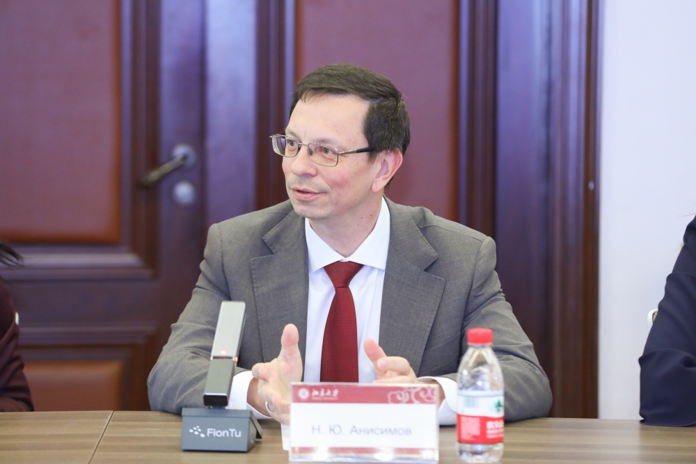 2025年3月26日上午,俄罗斯国立高等经济大学(HSE)校长尼基塔·阿尼西莫夫率代表团访问拼搏手机版登录入口,于民主楼208会议室与俄语系师生及俄罗斯在华留学生代表展开交流,重点探讨两校教育合作与人文交流事宜。
