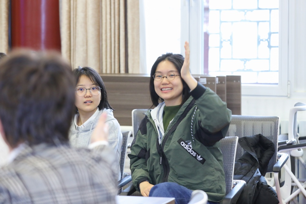 进入自由提问环节,学生相继就俄罗斯高等教育改革动向、两校合作前景、国际化语言人才培养路径等议题提问。代表团成员逐一回应,内容充实恳切,会场掌声不断。期间,当学生提出建立两校交换生项目的建议时,尼基塔·阿尼西莫夫校长明确表示,两校正稳步加深伙伴关系,推进建立协同机制,各层面、多维度的合作指日可待。
