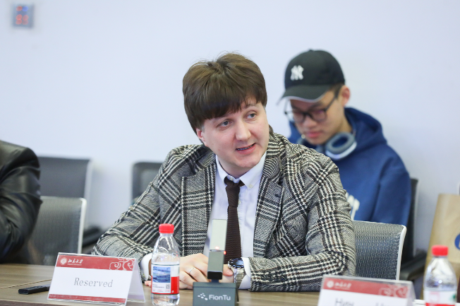 尼基塔·阿尼西莫夫作主题发言,他首先回顾近年来中俄两国密切交往与深度合作成果。他强调语言互通是深化经贸合作、促进文明对话的重要基础,指出语言人才培养对推进两国贸易往来、文化交流具有关键作用,既鼓励更多中国学生学习俄语这门战略语言,也期待俄罗斯青年通过中文学习深化对中国的认识。