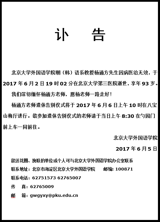 杨通方老师讣告