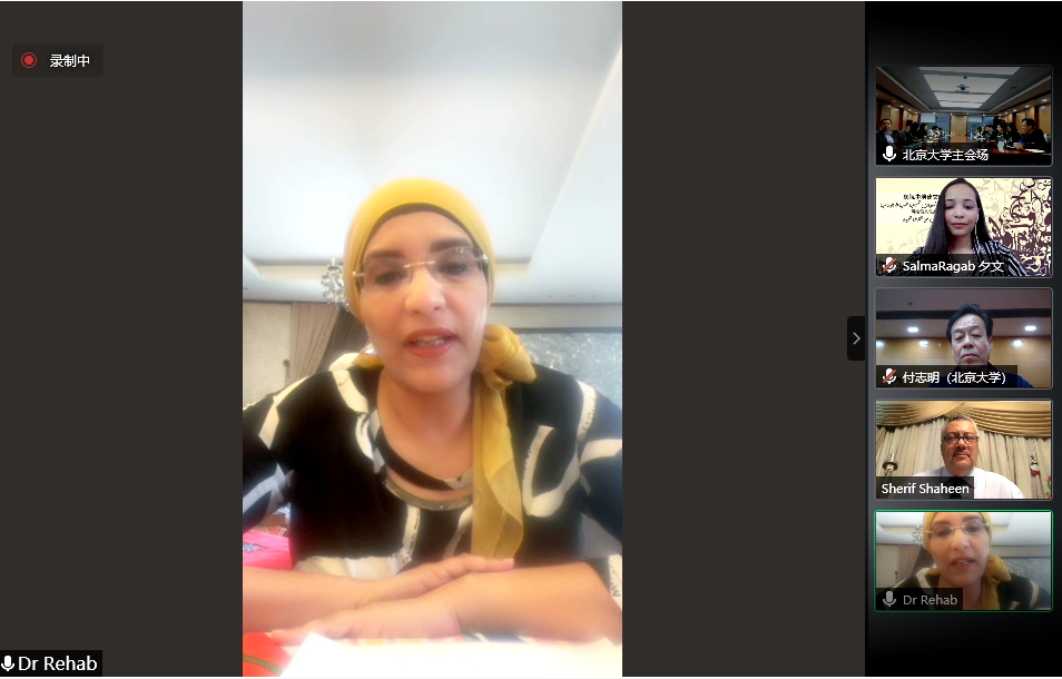 7日,讲座开幕仪式于北京时间下午3点、开罗时间上午9点开始。开幕式上,谢里夫•沙欣教授、付志明教授、李哈布教授和林丰民教授依次致辞。
