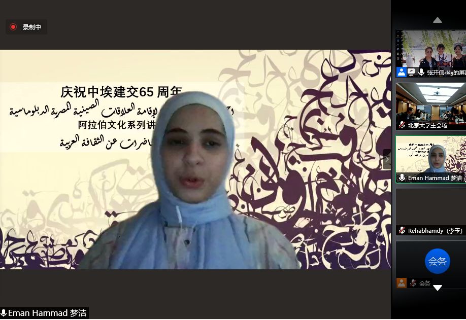 为庆祝中埃建交65周年,继成功举办北京大学与开罗大学“中国文化春令营”活动之后,两校又进行了新一轮的合作,于5月7日至8日联合举办“阿拉伯文化春令营”系列讲座。本次系列讲座线上线下协同进行。出席开幕式的有开罗大学文学院院长谢里夫•沙欣(Sherief Shahin)、文学院中文系主任兼孔子学院院长李哈布(Rehab),文学院阿拉伯语系教授阿扎•席波乐(Azza Shebl),中文系教师李玉(Rehab)、梦洁(Eman)、夕文(Salma),拼搏手机版登录入口副院长付志明、阿拉伯语系主任林丰民、叙利亚籍专家哈穆德•优尼斯(Hamoud Younes)、叙利亚籍专家赛米拉•萨拉玛(Samira Salami)、阿拉伯语系长聘副教授廉超群、讲师袁琳、助理教授李海鹏、埃及籍博士后高山(Alaa Mamdouh Akef)及阿拉伯语系40余名学生。