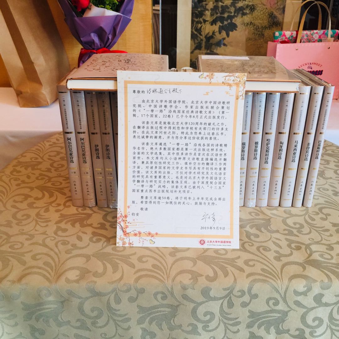 2019年9月29日下午,泰王国诗琳通公主在参加完中华人民共和国国家勋章和国家荣誉称号颁授仪式之后,前往北京丽思卡尔顿酒店宴请前任中国驻泰大使和公主的汉语教师代表。我国泰语界著名专家、翻译家、诗琳通讲席教授裴晓睿受邀参加了此次宴请活动,并作为译者之一向公主赠送了由北大拼搏手机版登录入口、北大中国诗歌研究院和作家出版社联合策划出版的《“一带一路”沿线国家经典诗歌文库》(第一辑)一套。