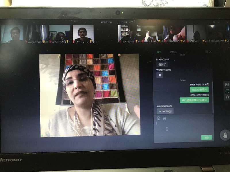 随后,开罗大学文学院中文系主任、开罗大学孔子学院埃方院长李哈布教授向中方学者分享了开罗大学网络授课的现状和经验。她提到,开罗大学采取了多种不同的平台以及直播和录播的形式开展网络授课,常用的平台有Classroom、Zoom和Schoology。随后她重点介绍了她所在的中文系的情况,指出埃及网络条件的限制以及中文系较为庞大的学生规模,共同决定了开罗大学中文系采取Schoology平台录播为主、配合WhatsApp平台定期实时在线答疑的网络授课方式。她具体分析了这一方式的优缺点,表示答疑参与度不足是现阶段中文系教师所面临的主要问题。谈及考试,她说,埃及高教部已经决定,本学期埃及高校的期末考试采用网络考试的形式,成绩只记通过与不通过。之后她专门就网络考试的操作方式征求了中方老师的意见。