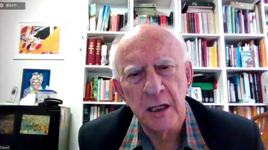 大卫·沃克教授在发言中盛赞中澳建交以来中国经济的杰出成就并表示:双边关系的行稳致远的重要基石是民间交流,人文交流十分关键,中澳共享同一命运的时间比两国建交的时间更长。他分享了与李尧教授合著的回忆录《共逍遥,乐陶陶》将一个澳大利亚人和一个中国人及其各自的家庭与两个国家的命运结合在一起。他以书中十九世纪气候变化对中国和澳大利亚两个家族命运的影响为例,说明虽然中澳远隔重洋,但中澳两国人民共享同一个地球,中国和澳大利亚人民都处在同样的地球气候影响变化之下,此刻也共同面对新冠疫情的挑战,并认为加强合作交流将有利于两国面对共同的挑战。