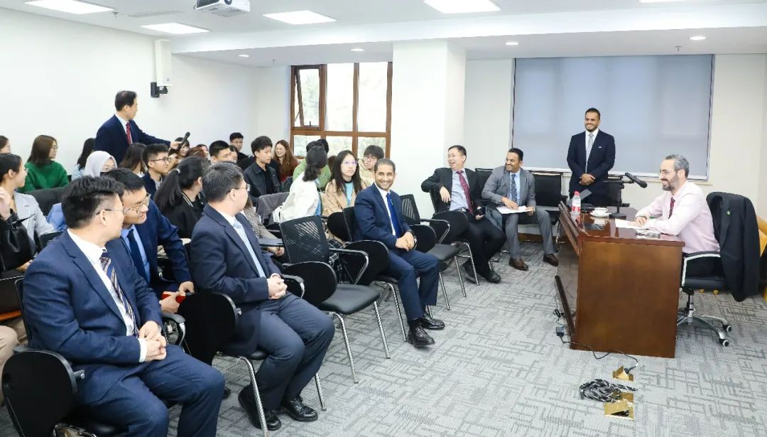 在交流互动环节,吴冰冰首先简要回顾了近年来中沙关系取得的瞩目成果,表示北大阿语系愿继续为推动两国关系发展发挥积极作用。随后同学们纷纷踊跃发言,2020级硕士研究生邓纬琳谈及其今年2月访问沙特阿拉伯的经历与感受,希望中沙双边合作不断深入,两国友谊历久弥新;2021级本科生承行健、李达镐、陈志恒、于欣雨、2022级硕士研究生王乃懋向哈勒比大使做了自我介绍,对大使来访表示热烈欢迎和真挚感谢,并就沙特汉语学习者就业去向、中沙经贸交流、中沙人文交往、青年交流等问题提问。