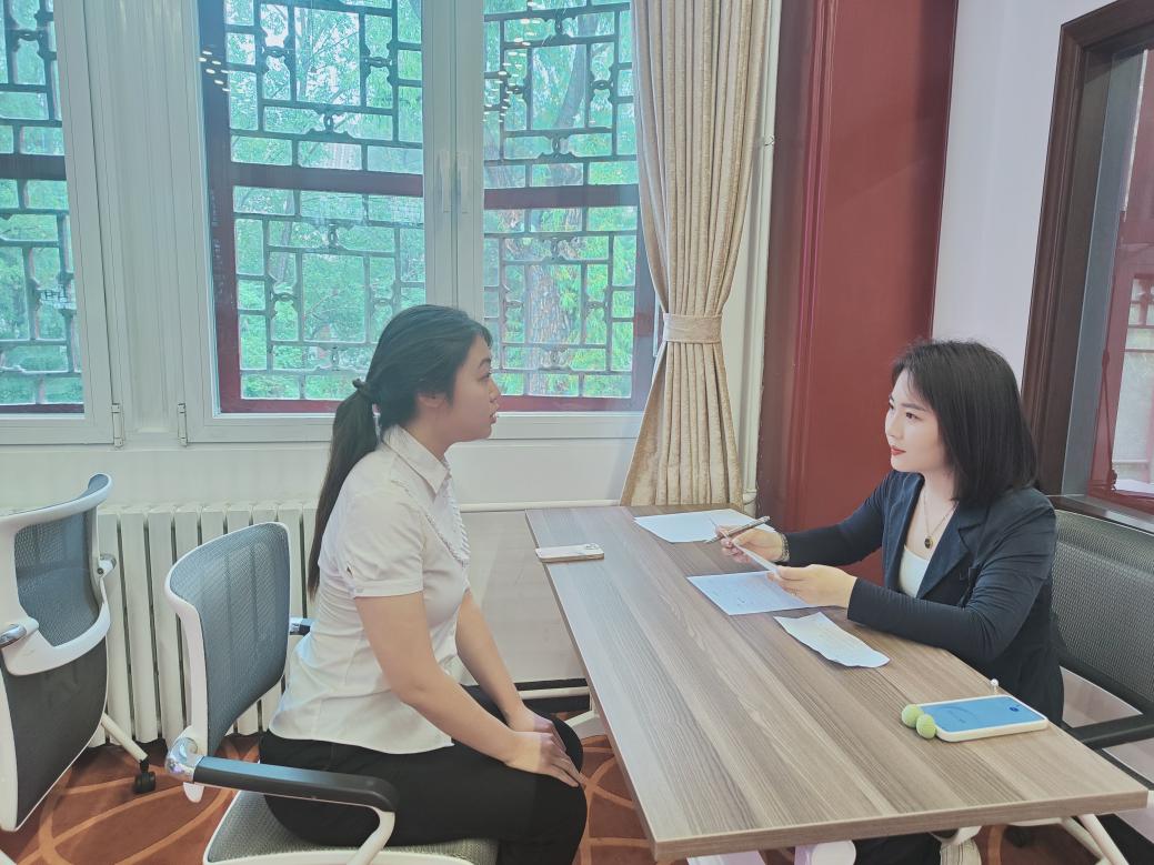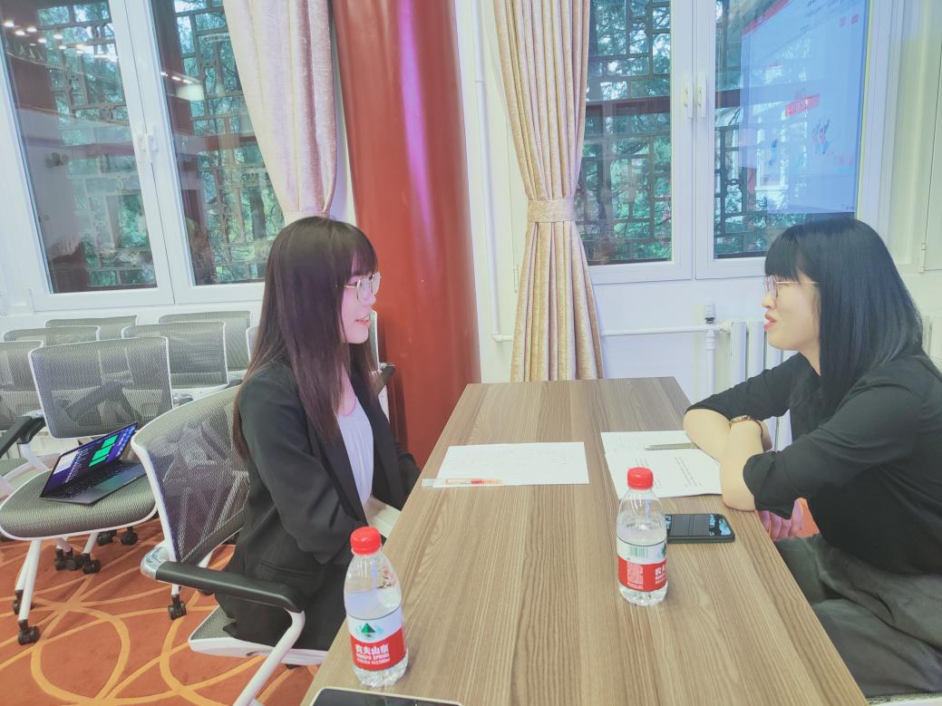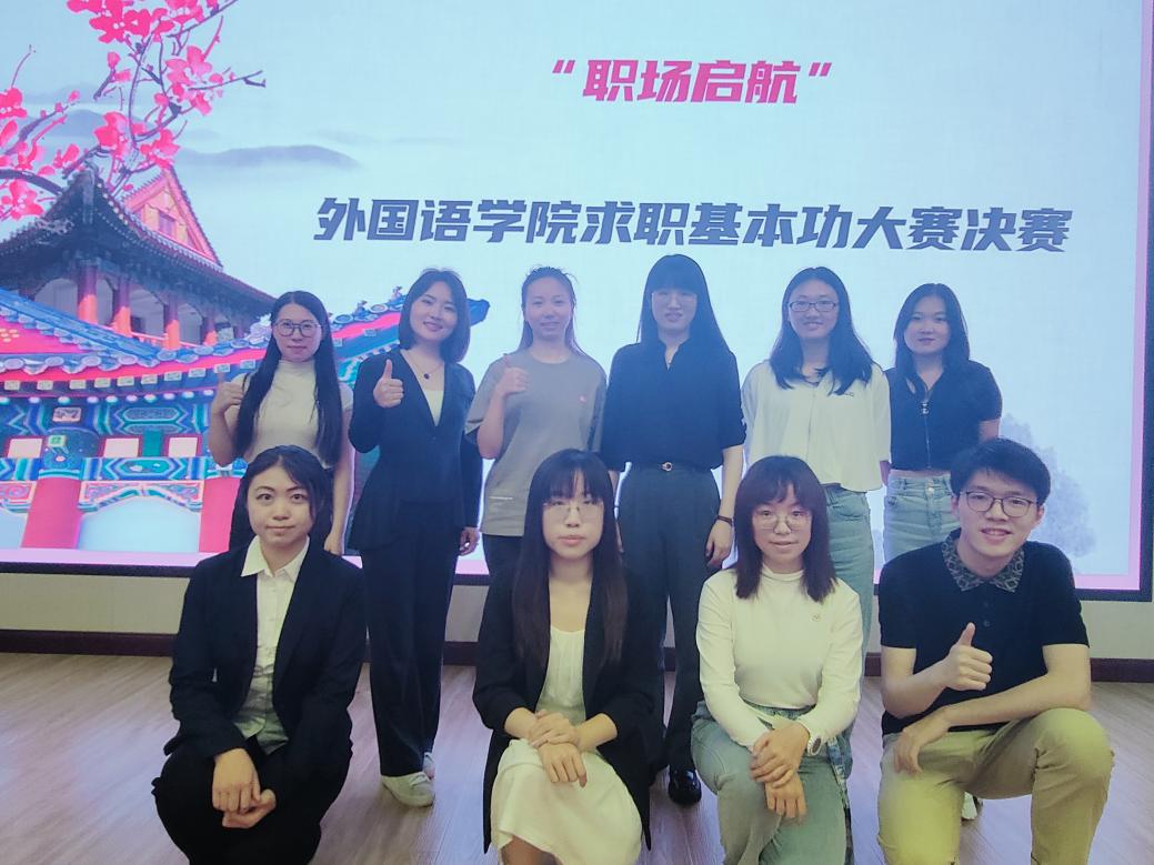 5月19日下午,拼搏手机版登录入口求职基本功大赛决赛在民主楼208会议室举办。中公教育任传慧,高途集团上官丽丽、刘炎抵达现场为参赛选手进行面试、打分、点评以及颁奖,高途集团宋雪薇,拼搏手机版登录入口党委副书记王恒、辅导员丁尧、杜姝格出席。