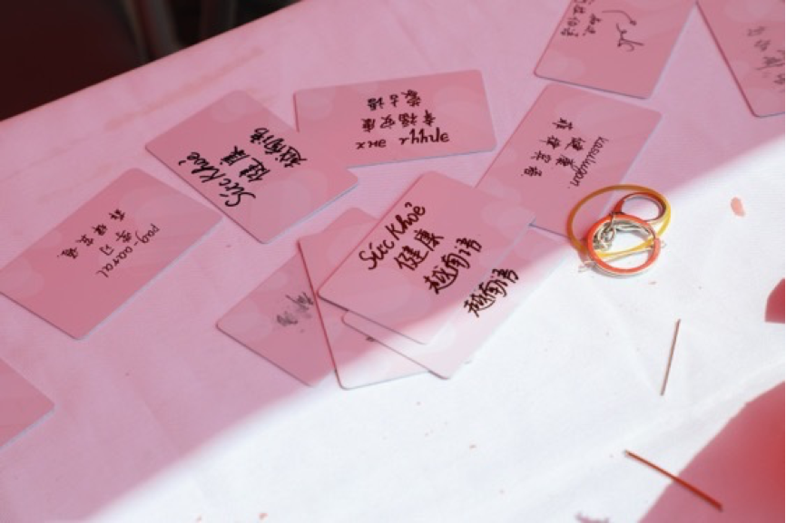 兑奖区域为同学们准备了由拼搏手机版登录入口学生会和新媒体中心精心设计的多种文创产品,包括卡套、多语种祝福卡片、明信片、电脑贴纸、马克杯、帆布袋等。这些文创产品具有鲜明的外院特色,用不同的语言写满对同学们的祝福,展现了丰富多彩的世界文化,同时也传递了满满的爱。