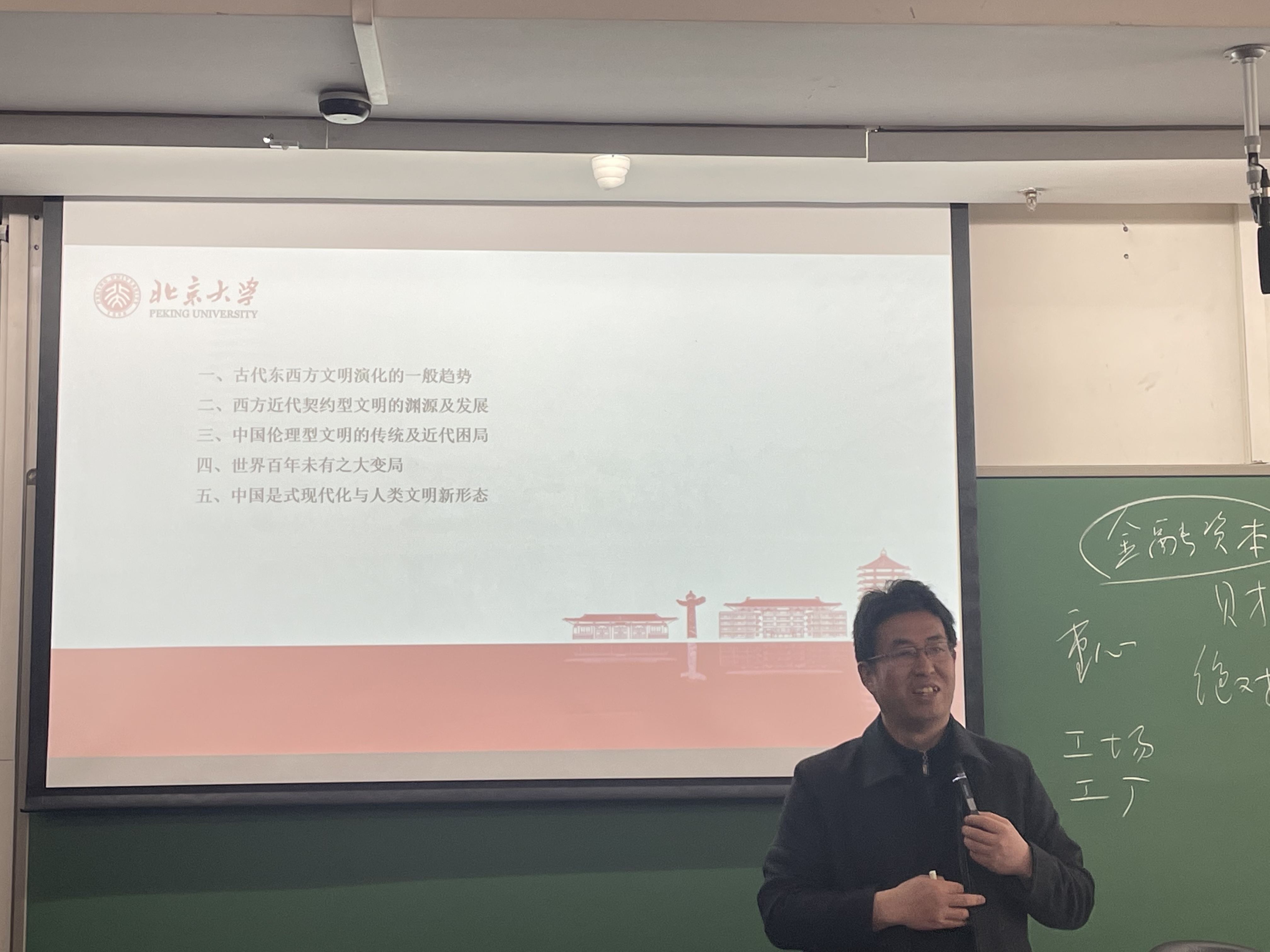 宋朝龙分别从“古代东西方文明演化的一般趋势”、“西方近代契约型文明的渊源及发展”、“中国伦理型文明的传统及近代困局”、“世界百年未有之大变局”和“中国式现代化与人类文明新形态”五个方面进行讲授。