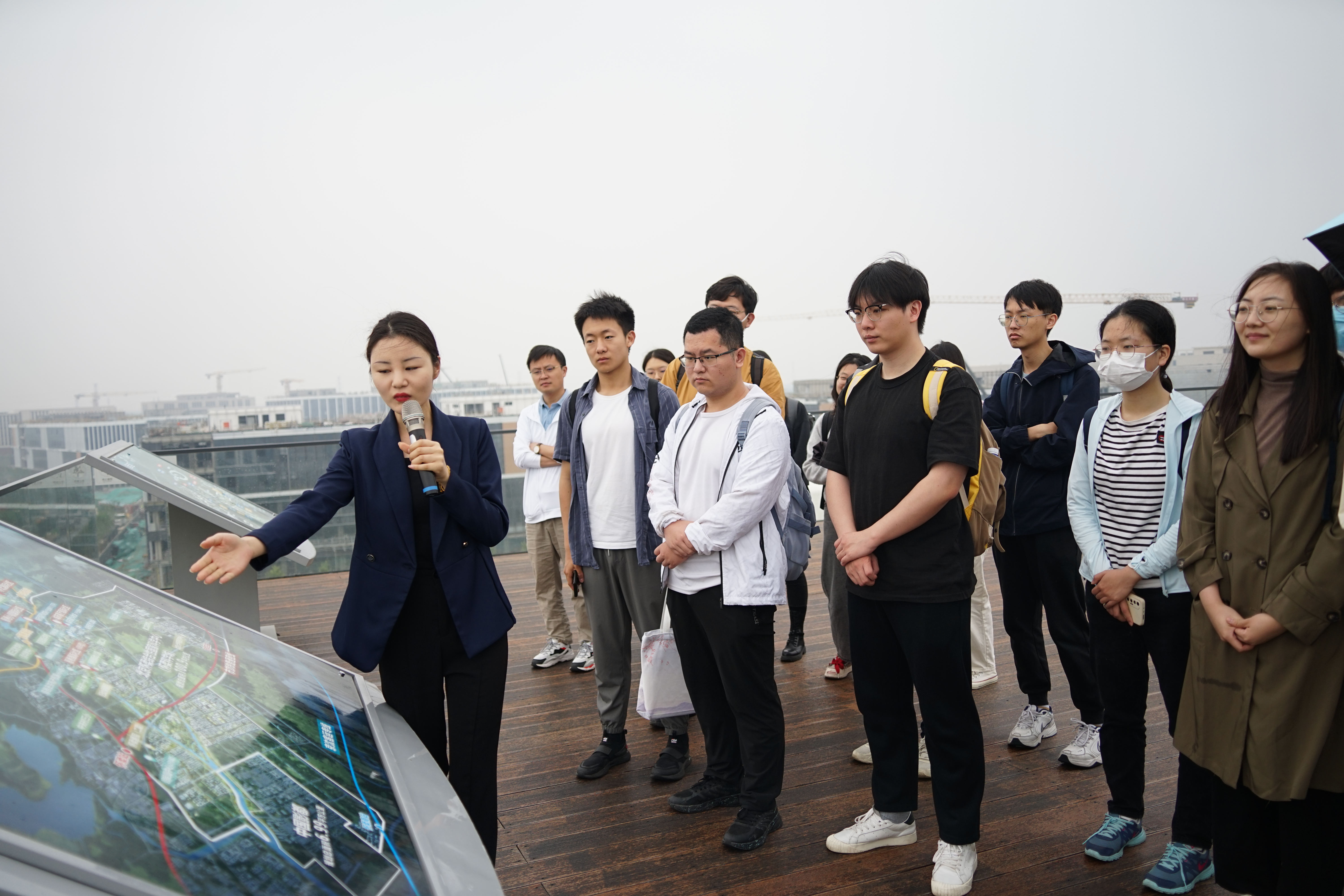 实践团聆听讲解员讲解怀柔科学城总体规划