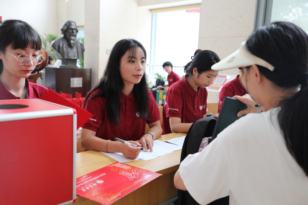 截至中午12时已有七成研究生新生完成报到。中午13:40分左右,副校长董志勇来到外院新楼看望前来报到的研究生同学,了解新生注册情况,关心迎新工作进展情况,并与学生进行了亲切的交谈。
