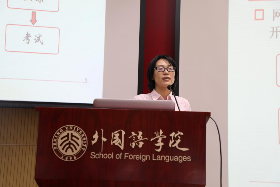 李宁向新生们介绍了本科生培养方案。她首先为同学们说明了外院学科专业的基本情况,并介绍了教务办公室老师的具体分工,随后她重点介绍了专业培养方案、网上选课流程以及毕业各项要求,说明了往年可能出现的各种意外情况,提醒同学们认真阅读培养方案,重视选课,遵守考试教学纪律。最后,她祝愿同学们选课顺利,四年之后圆满完成学业。