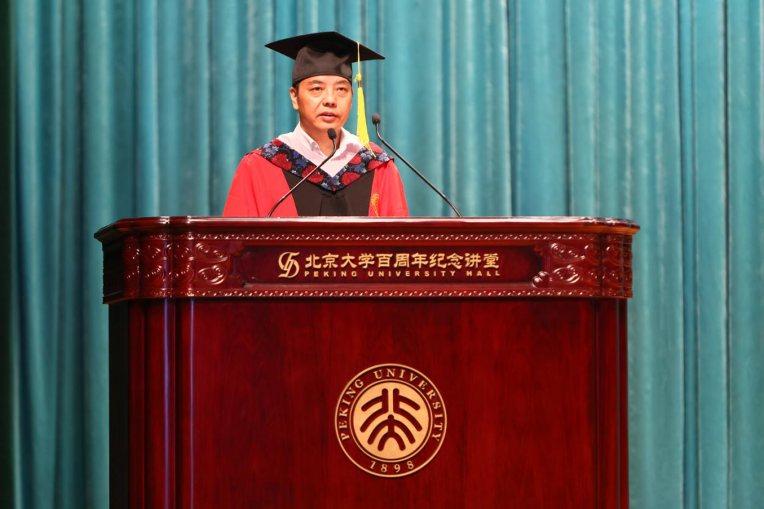 在热烈的掌声中,院长陈明为毕业生深情寄语。他引用李白诗句“却顾所来径,苍苍横翠微”,回顾同学们在燕园的青春岁月和成长历程。执手相别时,他提醒毕业生们,功崇惟志,业广惟勤,唯有胸怀家国,心系人民,勤学慎思,方能守正笃实,久久为功。同时,他鼓励同学们不忘初心,走进基层,融入群众,博观约取,厚积薄发,在知行合一之中,读好无字之书,成就精彩人生。最后,陈明向毕业生送上最真挚的祝福,无论未来道路如何,未名博雅永远是同学们的精神家园,真诚守候着同学们的归来。