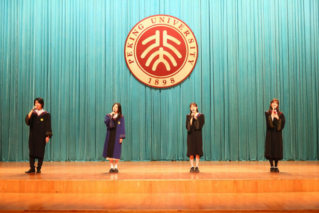 典礼行将结束,师生合唱《燕园情》。“燕园情,千千结”,联结的是所有外院人、北大人的心,不变的是真诚的师生情、同学情。“眼底未名水,胸中黄河月”,同学们将带着北大外院人的初心使命,奔赴天涯海角。