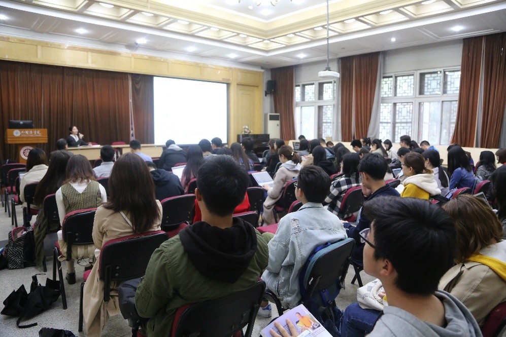 首先,任职于外交部亚洲司南亚处的外院2017届院友叶诗瑶,结合自身经历和工作心得,为同学们介绍了外交人才选拔考试的相关流程和工作内容。作为一名青年外交人员,叶诗瑶对自己在外交部的工作内容、工作氛围进行了介绍,并重点分享了在外交部工作所肩负的责任和使命。叶诗瑶嘱咐在场的同学们要夯实学业基础,这样才能在层层选拔中脱颖而出,用优秀的专业技能服务祖国的外交事业。