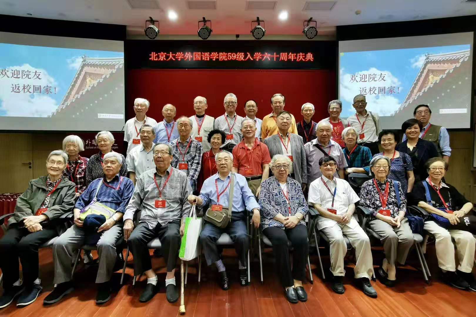 2019年9月15日,中秋佳节后的第一个周日,拼搏手机版登录入口迎来了一次特殊聚会——1959级英德法系系友入学六十周年庆典。此时,北大外院新楼外悬挂着“热烈欢迎2019级新同学”字样的横幅,距学长们入校的1959年已是一个甲子。