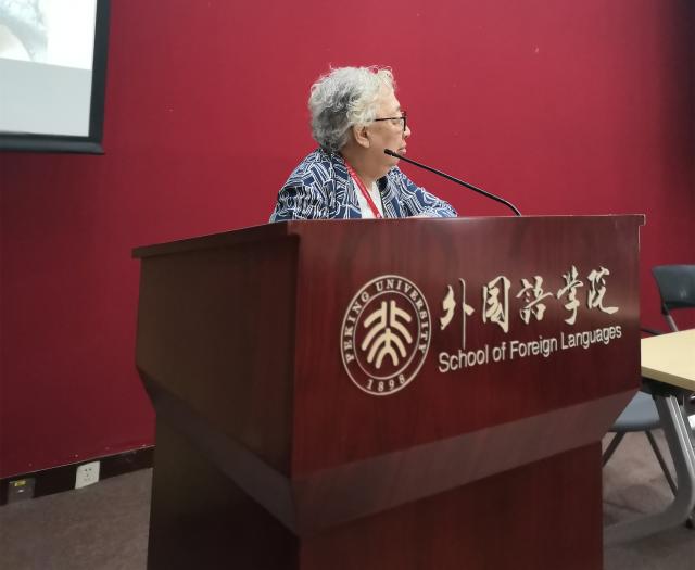 筹备组代表、英语系系友戴行钺教授也做了精彩发言。他在发言中欢迎了千里迢迢特地赶来参加聚会的王乾贵夫妇和刘立炎夫妇,并代表老校友对外院师生寄予厚望。戴教授引用鲁迅先生的金句:“北大永远是向上的。”他坚信北大外院也是永远向上的!最后,戴教授祝愿老同学们“脚踏实地、步步为营,走向人生第五个光辉二十年 !”