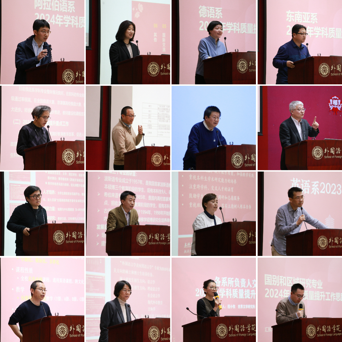 16位系所专业的负责人或教师代表在全面梳理2023年各项工作基础上,分别就2024年学科质量提升工作思路进行了交流发言。与会教师结合“学科质量年”主题,围绕学科发展、师资队伍、人才培养、科学研究、国际交流等工作进行了深入探讨。学院党政领导班子和各专门委员会成员结合研讨内容给予回应,并提出对下一步重点工作的思考和建议。