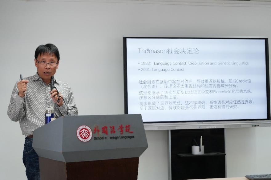 本次讲座中,陈保亚老师以从底层干扰到母语干扰为例,深入浅出地向师生们阐释了如何用理论照亮研究材料,以及如何基于材料的深入分析提出新的理论模型。