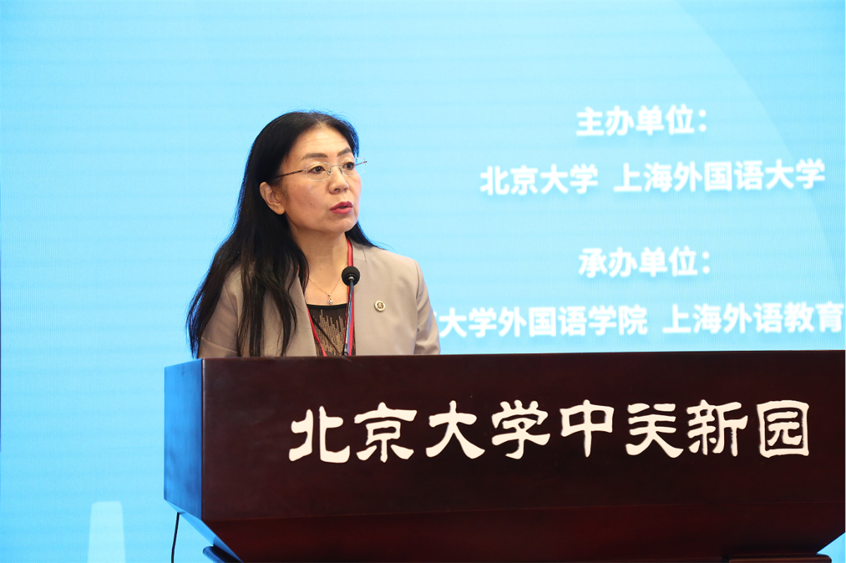 赵蓉晖以“构建世界语言知识体系,培养新时代多语人才”为题,从世界语言知识体系视角出发,剖析了语言研究的四种主要范式、大国语言战略体系内外部的服务对象、理解语言本质的三个维度、目前世界语言知识生产中的问题及构建世界语言知识的具体路径。她指出,外语教育要基于世界语言知识体系培养新时代多语人才,构建以语言为核心和纽带的学科群,从多维度理解大变局、明确外语教育的目标、理解语言能力内涵、改革外语教育体系和机制,以回应时代给外语研究和教育提出的新要求。